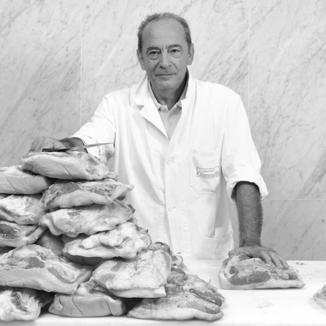 Nostro padre, Nestore Giannarelli, aprì nel 1953 la sua macelleria-salumeria a Bedizzano, il paese più grande a monte di Carrara, nel versante marmifero di Colonnata. Qui, iniziò a fare salumi tipici e, soprattutto, il lardo, companatico principe per i cavatori di quei paesi.